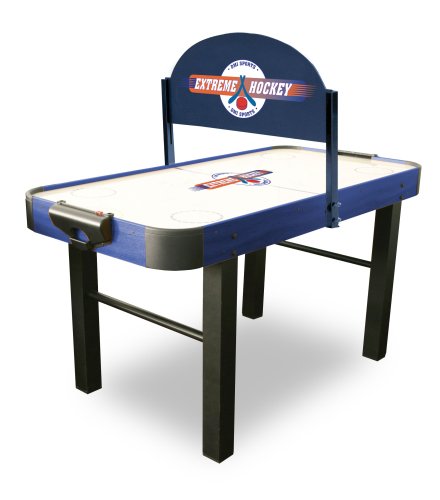 DMI Sports Extreme 5-Foot Air Hockey Table Introducing Extreme Hockey - The Ultimate in High Speed Table Hockey from DMI Sports. This optional feature is a visual "blind" that is mounted above the play surface in the middle of the table. The blind prevents the player from seeing the puck until it passes the center line, giving players less time to react to the puck. This makes the pace of play intense. The Extreme Hockey can be adjusted to three height positions for varying levels, or it can be removed (in seconds) for standard play. This 60" x 30" table features, Durable scratch resistant surface, Goal Boxes with built-in slide scorers, Assembles in minutes