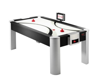 Harvard Attack Zone 7' Air Hockey Table The Harvard Attack Zone 7' Air Hockey Table brings the ultimate, elite 2-player Harvard air hockey game to your rec room. This hockey table fuses style with top technology and function. Radius L-Style legs shine like chrome and swoosh graphics stylize. A foot longer than standard home air hockey tables, you will reach for that puck on the Attack Zone. Electronic scoring for authentic air hockey...at home. Included with the Harvard Attack: 2 striking paddles and 2 pucks (because it's a 2-player table!). Bottom Line: The Harvard Attack Zone makes you play like you mean it. Dimensions: 84" L x 44" W x 31" H Study 4" x 1/2" black L-style leg 76 1/2" L x 36 1/2" W Laminated playbed Swoosh half moon graphics Display electronic scorer Sturdy 3/4" MDF with Silver PVC Laminate Radius L-Style leg Electronic scoring Legs with end panels and cross bars for extra stability 100V motor Comes with 2 red striking paddles and 2 red pucks