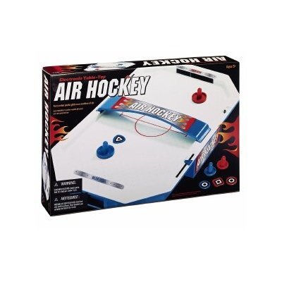 Table Top Air Hockey Shoot and score big with this Electronic Table-Top Air Hockey from International Playthings! Just like at the arcade, fast action pucks glide on a cushion of air.Contains one air hockey game with manual scorekeeper, three pucks and two paddles. Requires two D batteries (not included). Measures approx. 20" x 12". Ages 5+