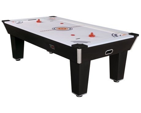 Harvard Arctic Ice 7 1/2' Air Hockey Table Get into the game with this Harvard Artic Ice air hockey table. When you run the table its a good table to run with a glossy PVC Laminate play bed with a 110V blower motor for smooth consistent puck action. With inlaid electronic scoring right in the playing surface to keep your attention where it needs to be. The massive rails and 1 deep play bed give you more bounce and quicker play. Kept stable on a heavy duty tapered cabinet reinforced with criss cross support frame designed to take years and years of aggressive play. Contemporary styling includes Taper Post legs with levelers which provide exceptional stability. Comes with 4 strikers and 4 pucks. Dimensions 89 1/2 L x 47 1/2 W x 32 H.